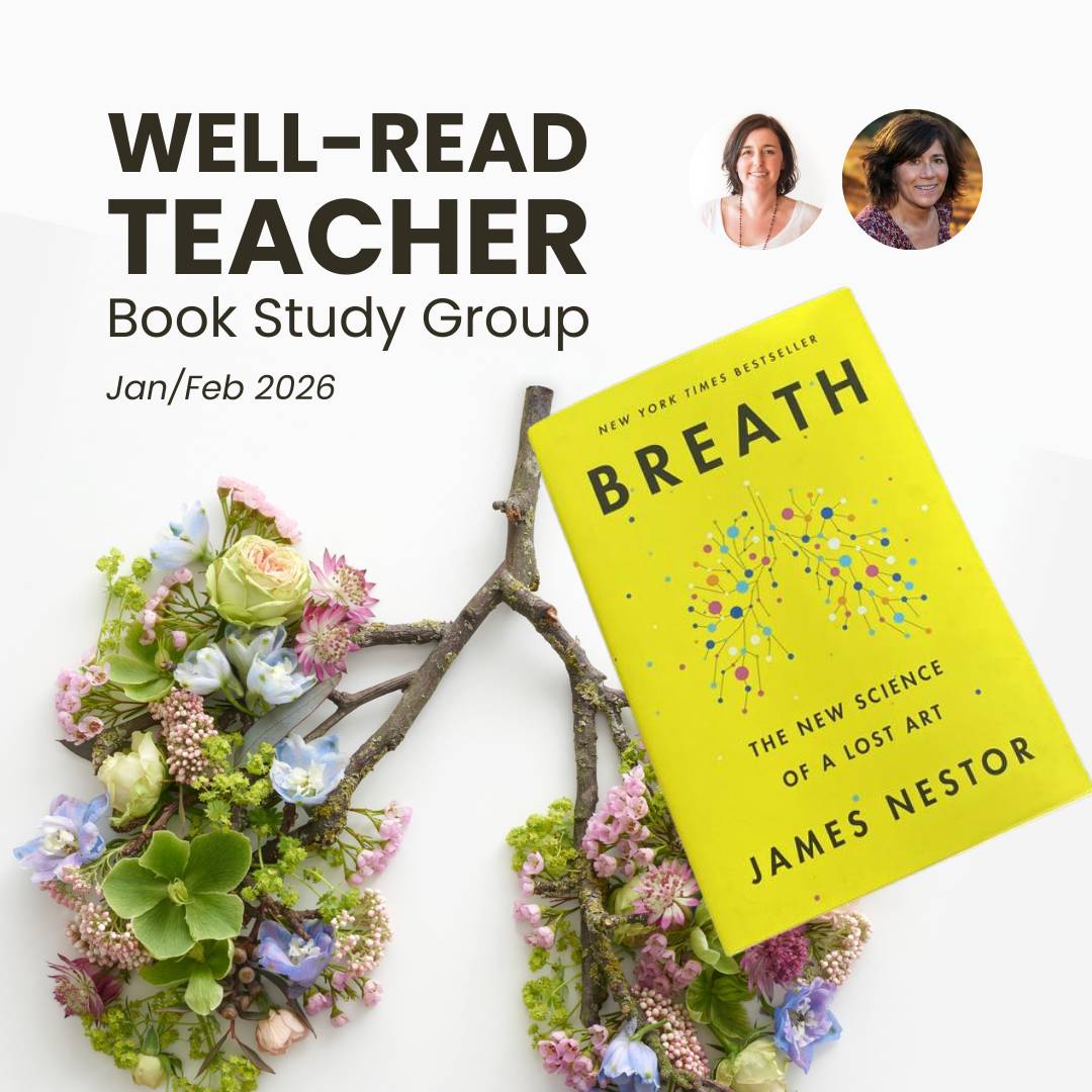 When you join The Well-Read Teacher, you get access to all the LIVE sessions in January 2026 and all the REPLAYS of past book study series too. In January 2026, Liza Bertini and Tiffany Chan will be teaming up to lead you through Breath, by James Nestor. Drop your email into the form above for more information.